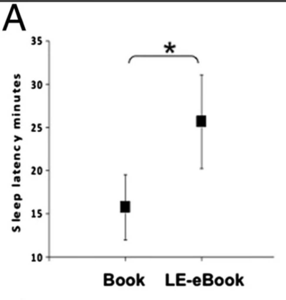 阅读 LE 电子书的参与者比阅读纸质书的入睡时间更长 25.65 分钟 vs 15.75 分钟